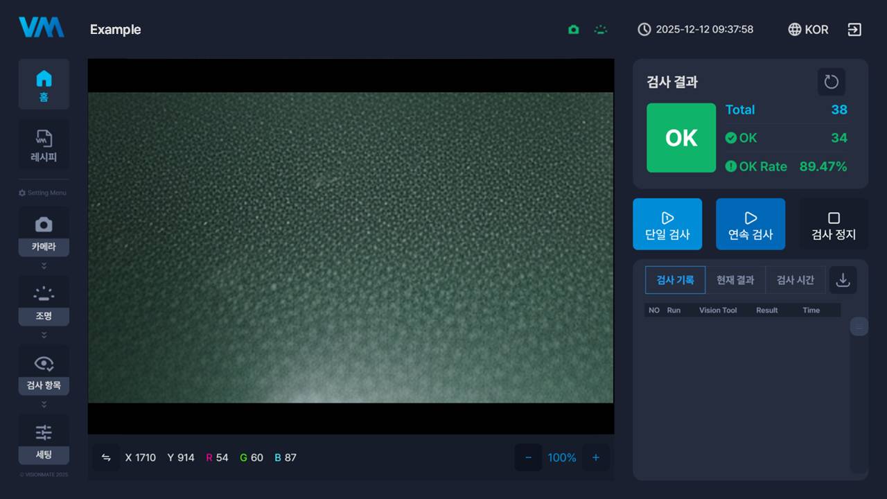조명 제어 및 이미지 분석을 통해 코팅 불균일, 이물, 결함 등을 검사할 수 있습니다.