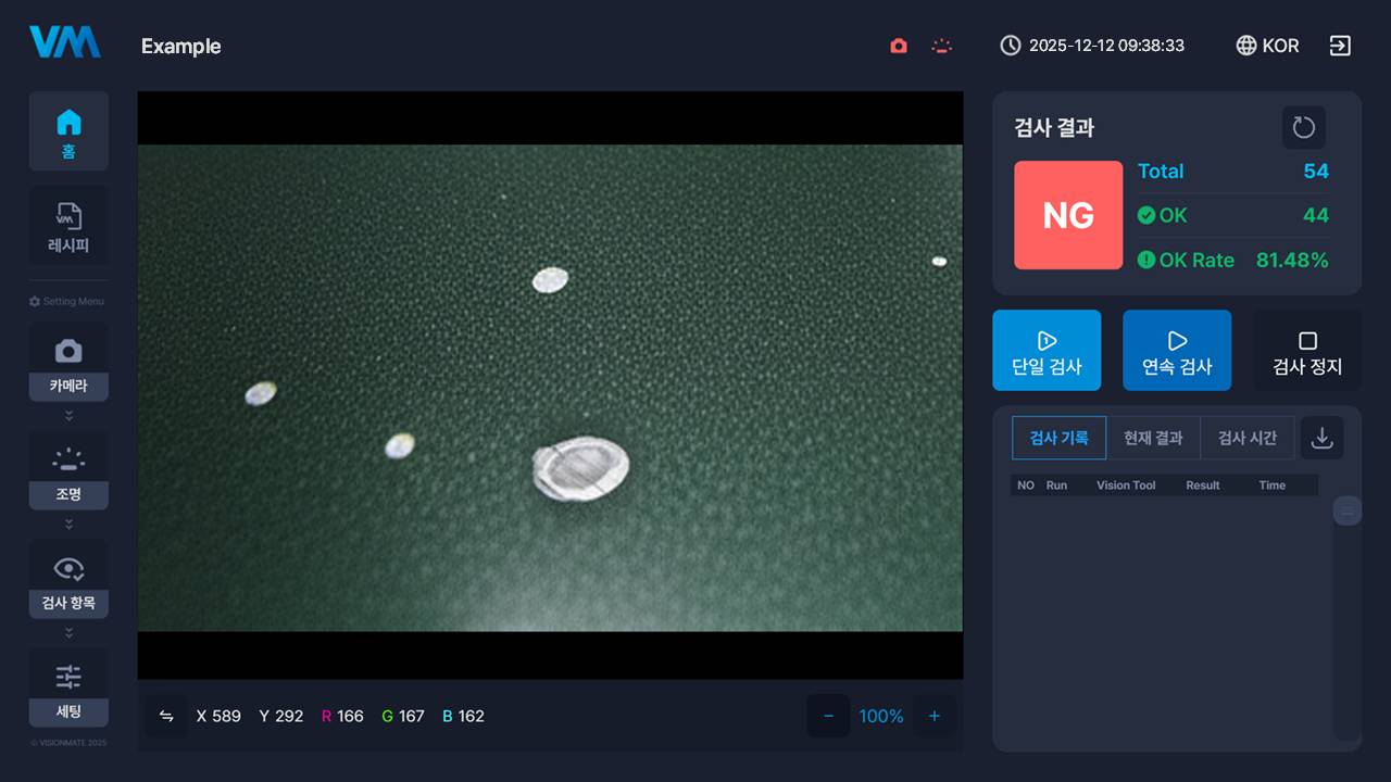 조명 제어 및 이미지 분석을 통해 코팅 불균일, 이물, 결함 등을 검사할 수 있습니다.