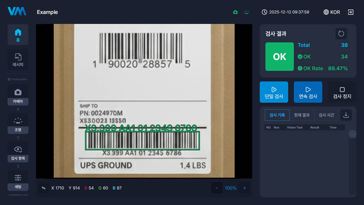 제품 및 박스에 인쇄된 바코드를 판독합니다.